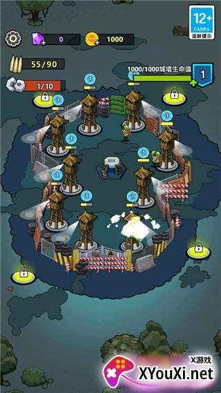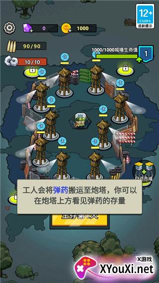 2、将城墙四周布满炮塔,并持续升级,构筑铜墙铁壁;