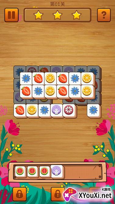 3、接着,依照新手引导,将相同花纹的方块巧妙地放置于指定区域。