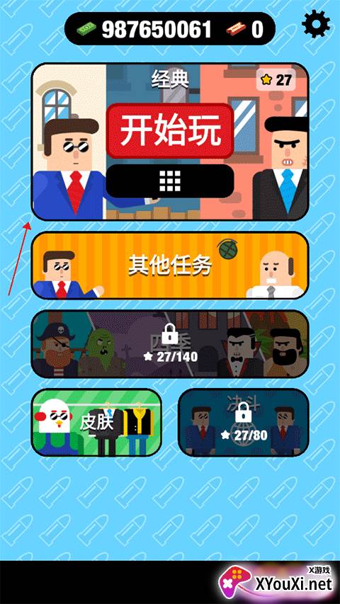《子弹先生》——一款将策略与创意完美融合的解谜射击游戏,等待着你的挑战!在这里,每一颗子弹都弥足珍贵,你需要以有限的弹药,精准击败所有敌人。游戏不仅考验你的射击准头,更要求你巧妙利用弹道原理和环境互动,破解重重关卡谜题。只有当瞄准足够精准,射击路径设计得足够精妙,你才能在《子弹先生》的世界中无往不胜,晋升为真正的“无敌枪神”!