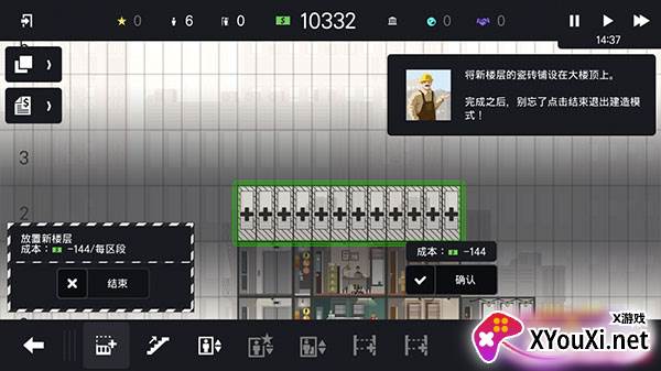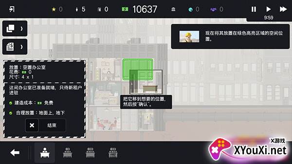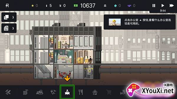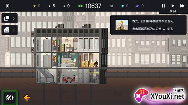 4. 点击左下角按钮,为你的大楼增添办公室或其他功能区域,开启多元化布局。