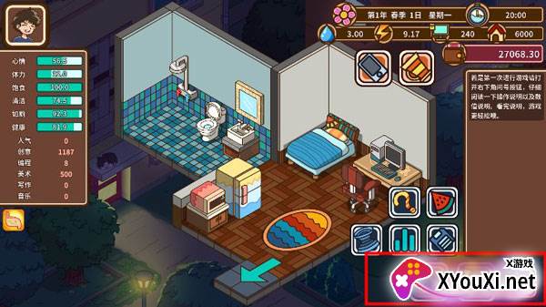 这是一款颇具挑战性的模拟游戏,绝非轻松无脑之作。它细腻地描绘了一个宅家青年勤奋学习,继而努力工作赚钱的故事。游戏并未涵盖人的一生,而是聚焦于角色生命中一个特定的两年片段,因此内容范围相对集中,不涉及任何自定义建造元素。