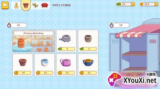3、前往商店,挑选各式花盆与家具,为你的花园增添光彩。