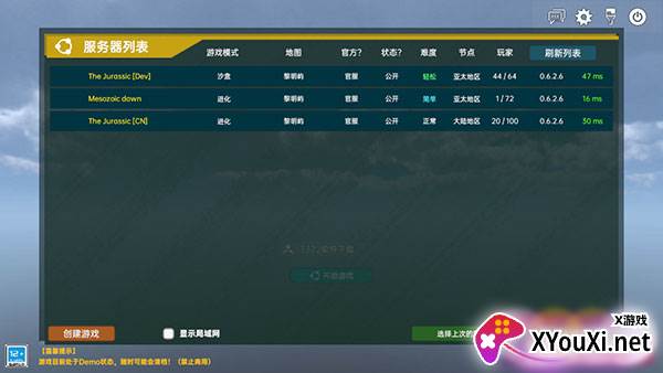 1、游戏启动后,您将看到一个在线服务器列表,其中展示了其他玩家创建的公开地图。您可以根据难度偏好,选择加入其中,与全球玩家一同探险。