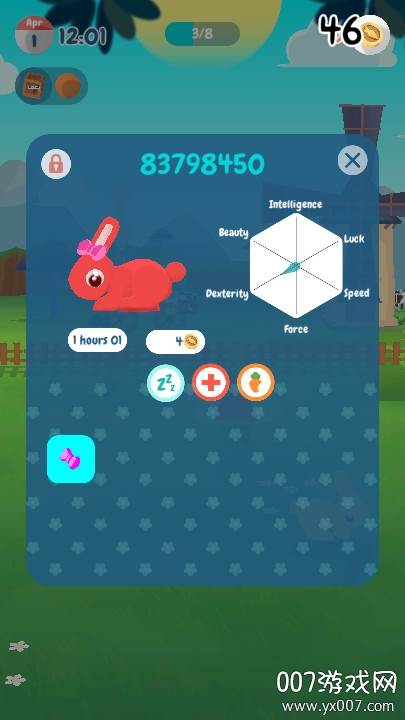 你的专属养兔场里,每一只兔子都是独一无二的,它们的大小、毛色都各具特色。