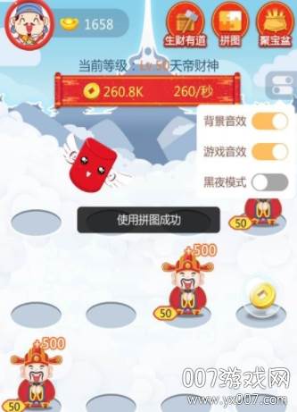 2. 合成升级: 惊喜不断!通过合成机制,您可以获得更高级别的财神,收益自然也水涨船高。