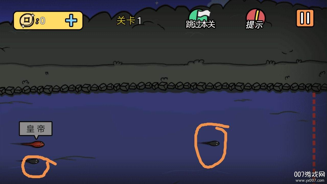 1. 游戏关卡看似简单,实则暗藏玄机。初上手时,玩家难免会感到一头雾水,但细细品味,从第一关“皇帝诞生”的隐喻,到后续的成长历程,无不充满深意。你需要捕捉那些过于活跃的小蝌蚪,确保“皇上”能成为第一个抵达终点的那一个——这便是帝王之路的序曲。