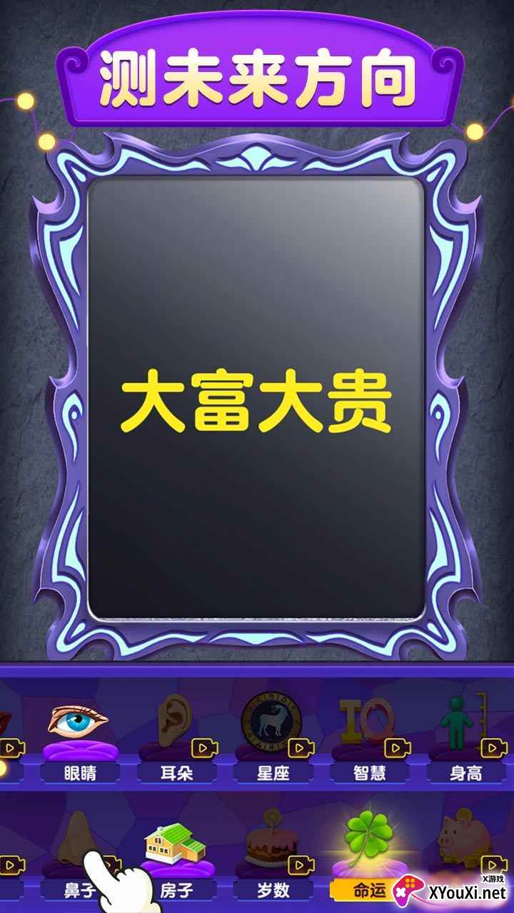 想知道你的命运会走向何方?不妨试试这款名为“魔镜模拟器”的趣味占卜小游戏!只需在镜面挥洒创意,无论写上自己的名字、他人的名字,或是随心勾勒一笔,魔镜便能为你揭示种种占卜结果。这款游戏凭借其新颖的玩法,轻松俘获老少玩家的心。更令人惊喜的是,它拥有令人赏心悦目的精致画风。如果您也对这份神秘的占卜体验充满好奇,那就快来007游戏网,即刻下载这款好玩的“魔镜模拟器”吧!