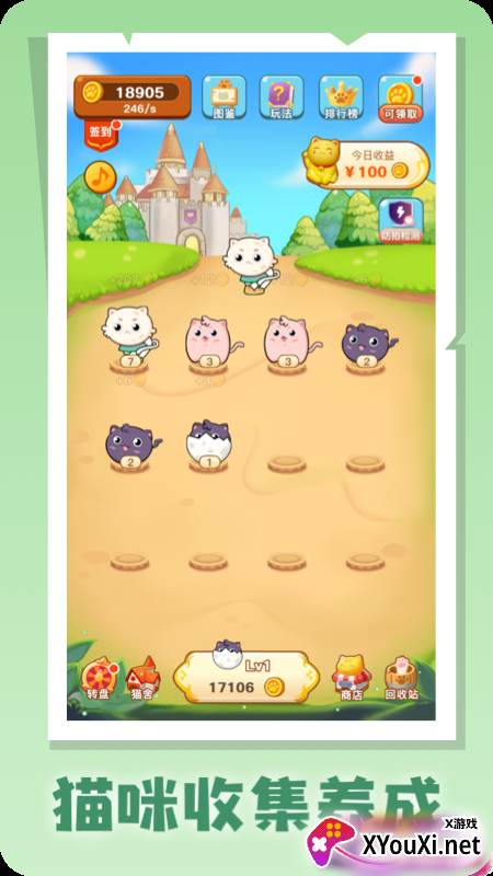 2. 在这里,玩家可以通过简单的猫咪合成操作,免费提升猫咪等级,每一只猫咪都蕴藏着可观的利润。