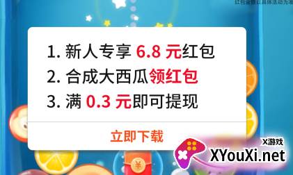 《西瓜消消消红包版》——指尖轻点,红包连连,轻松赚取你的第一桶金!这款游戏一经上线,便以其简单易上手的消除合成玩法,迅速俘获了众多玩家的心。在这里,你无需高深的技巧,只需巧妙地合成一个个可爱的西瓜,就能源源不断地收获丰厚的红包奖励。更令人惊喜的是,仅需0.3元,就能即刻提现至你的微信钱包,让你边玩边赚,乐趣无穷!心动不如行动,快来007游戏网下载,开启你的红包淘金之旅吧!
