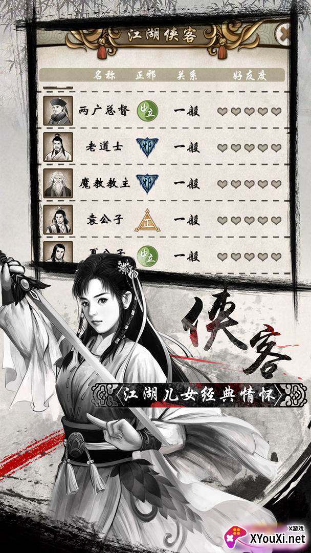 在这个广阔的世界里,江湖中赫赫有名的剑客们将一一登场,与您并肩或对决。