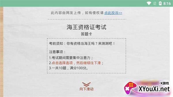 这不仅仅是一款游戏,更是一次别开生面的自我探索!《海王资格证考试》以其独具匠心的创意,为你模拟了一场场紧张刺激的“海王”测试。海量精心准备的测试题,涵盖了“海王”的方方面面。你只需凭借对题意的理解,做出最契合自身情况的回答,就能一步步接近那令人梦寐以求的“海王”桂冠!