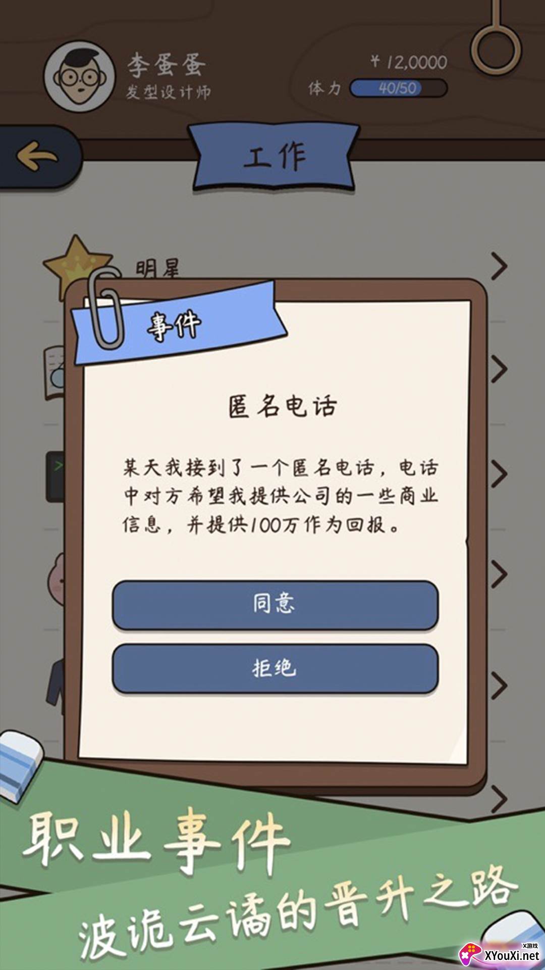 这是一款深度模拟中国社会生活的休闲手游。从零岁伊始,你将亲历成长、求学、就业、创业、组建家庭等人生关键节点。你需要时刻关注角色的各项属性,并明智地分配资源,方能实现心中的理想人生。你是否想过,从零开始,一路摸爬滚打,最终成为人生赢家?在这里,一切皆有可能!