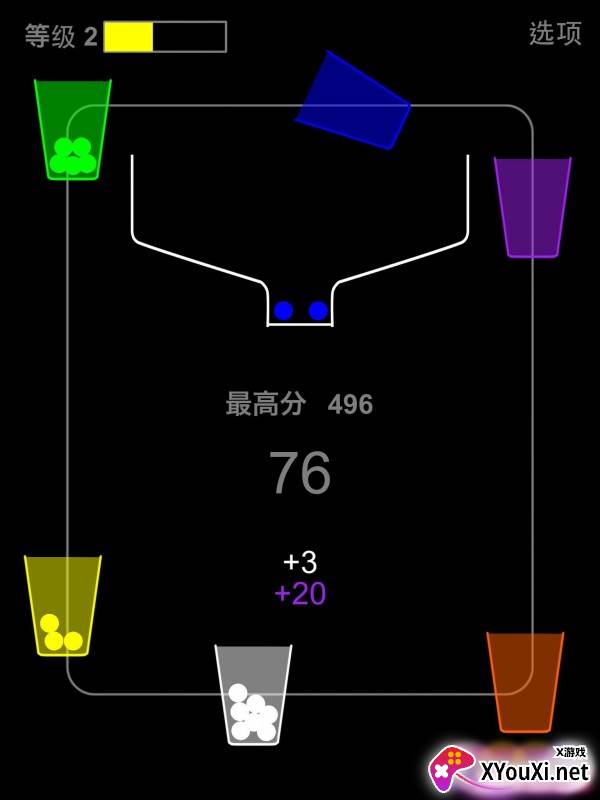 彩色的杯子能够生成彩色的珍贵小球,接住它们,你将获得更高的分数奖励!