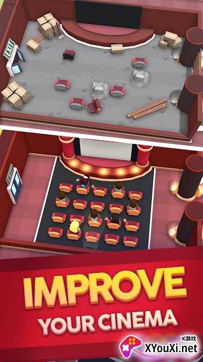 3. 轻松上手,畅享经营:这款游戏将为您带来轻松愉快的经营体验,您可以解锁并经营各式各样的影院,感受其中的乐趣。