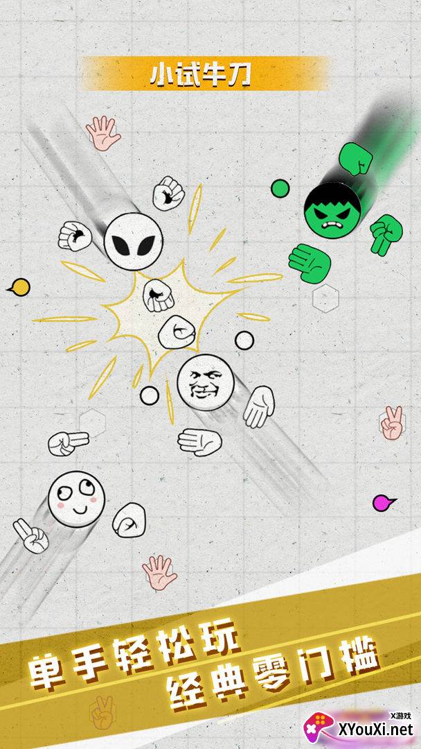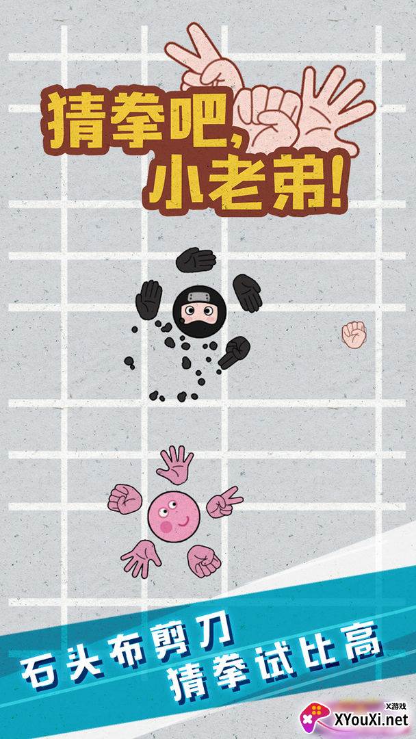 还记得那句“石头、剪刀、布”的口号吗?是否厌倦了成人世界的尔虞我诈,渴望一份纯粹的童年乐趣?《猜拳吧小老弟》正是这样一款让你瞬间穿越回无忧无虑童年的游戏。在这里,你就是行走的“石头、剪刀、布”,策略性地出击,击败你的对手。只需单手操控,就能在这场欢乐的对决中脱颖而出。别再犹豫,叫上你的“小老弟”,一起猜拳,一决高下!