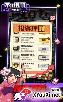 1. **玩家养成,技艺巅峰:** 招募并悉心培养你的游戏玩家,让他们从新手蜕变为能够挑战极限的街机大神,解锁“一币通关”的辉煌成就!