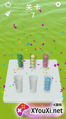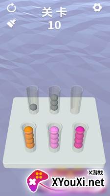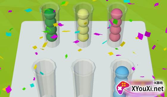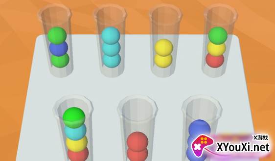 2. 操作与玩法皆简单直观。建议的策略是:先利用一根试管作为临时“中转站”,再将小球有序地转移至其他试管进行分类;