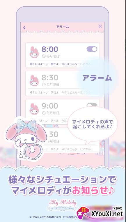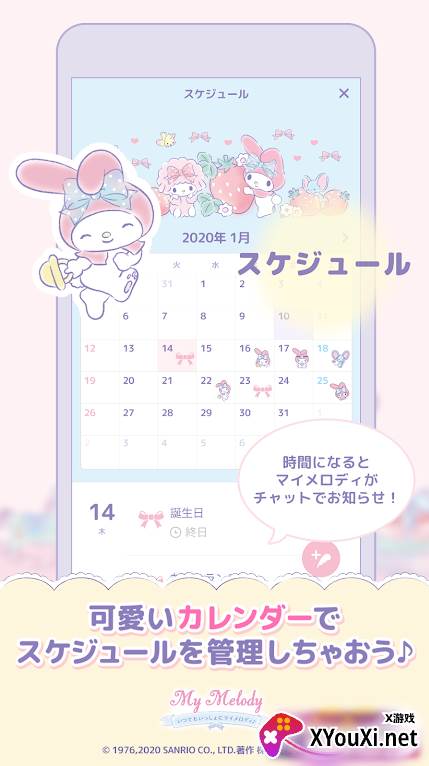 作为一款纪念美乐蒂诞生45周年的免费手机应用,《My Melody》集成了聊天、日程管理、闹钟等多种实用功能。它时刻为你推送最新的产品、活动及补货信息,让你紧跟潮流。最令人称道的是“旋律聊天”功能,美乐蒂可以随时随地与你自由交流,倾听并解答你的烦恼与疑问。而“我的日程安排”则让你可以利用可爱的旋律日历来管理你的活动时间表,并在有空时通过聊天告知美乐蒂,实现生活与情感的双重管理。