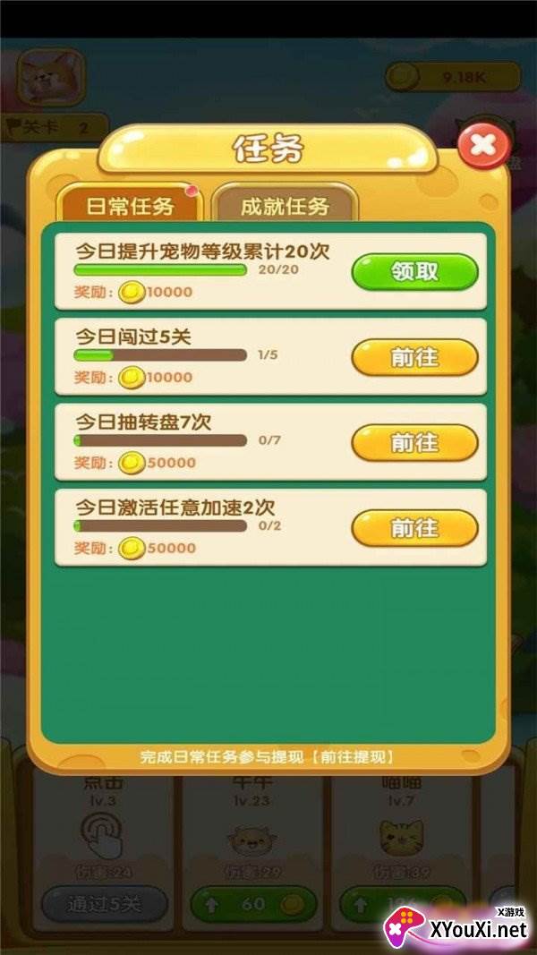 只需点击顶部的提现按钮,即可轻松提现0.30元,秒速到账。游戏中,每个场景都呈现出别样的风景,你可以自由切换,打造属于你的专属宠物乐园。所有的小宠物都设计得萌态可掬,让你瞬间化身快乐的铲屎官。在这里,玩家每天只需轻松点击消除对应的方块,就能获得丰厚的报酬。不仅如此,游戏还设有海量关卡,每一关的成功挑战都能为你带来可观的收益。即使是挂机也能轻松领红包,还能提现到微信,简直太好玩了!