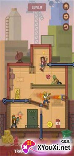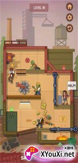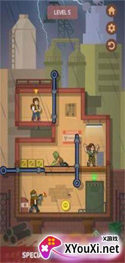 1. 你的任务是找到拔出所有关键拉针的最佳时机与方法。在前进的路上,僵尸将如影随形,每一次拔针都伴随着心跳加速的刺激!
