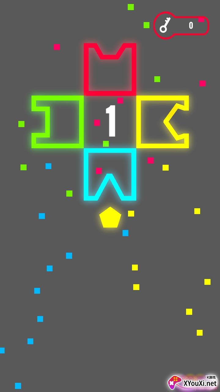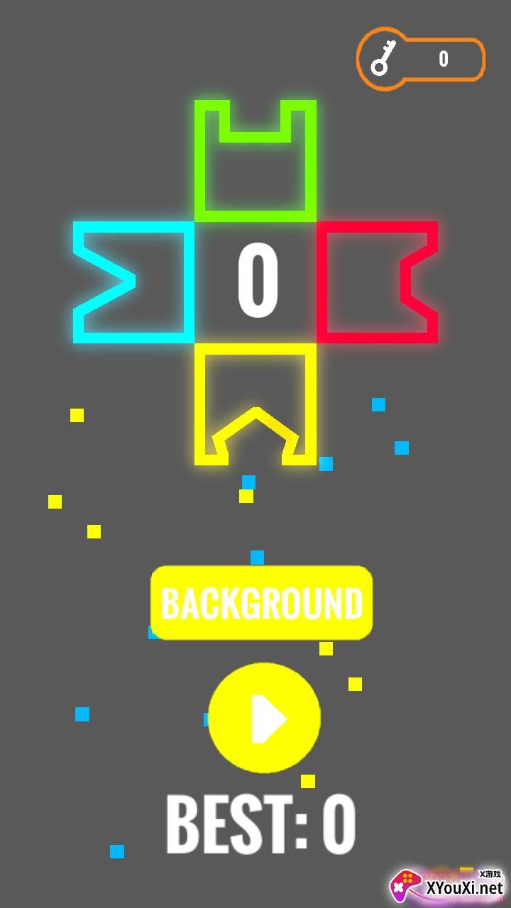 在这款《放好形状无限连玩版》中,玩家将扮演一位形状放置大师。你将控制由四个霓虹色方块组成的组合体,每个方块都巧妙地设计了一个可以容纳四种基础几何形状——三角形、六边形以及多边形——的凹槽。这些形状将自屏幕底部翩然而至,并向立方体群汇聚,意图与之融为一体。你的任务便是通过精准的屏幕点击,触发立方体的90度旋转,确保每一块来临的形状都能与正确的方块凹槽严丝合缝地匹配。每一次成功的对接,不仅会为你赢得宝贵的分数,更会解锁全新的背景,为你的游戏之旅增添更多视觉上的惊喜。
