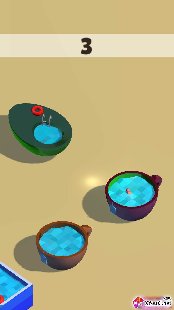 泳池潜水员趣味跳跳版》是一款脑洞大开的休闲闯关手游,其玩法与经典的“跳一跳”异曲同工,但玩家此次将化身为一名泳池潜水员,目标是精准地跃入下一个泳池。潜水员们滑稽逗趣的跳跃姿态,定能让你忍俊不禁,捧腹大笑。游戏内嵌了海量精心设计的特色关卡,每一关都对玩家的操作精度提出了严峻考验,一旦上手,便会让你沉浸其中,欲罢不能。
