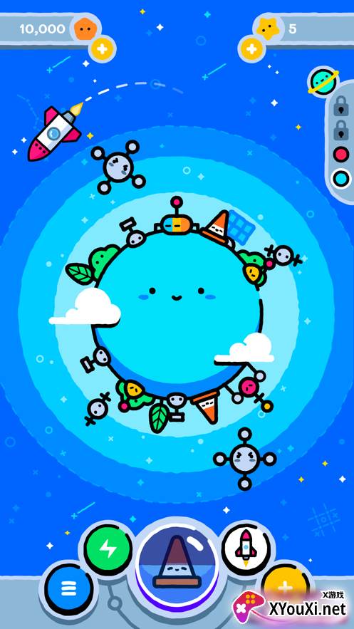 《休闲口袋星球》以其萌趣可爱的画风,为玩家呈现了一个充满奇思妙想的星球世界。游戏玩法轻松休闲,你可以解锁并探索各式各样的星球,完成琳琅满目的挑战。独特的放置玩法让你即使离线,也能轻松收集资源,加速你的星际进程。想象一下,将一个个小小的星球定居点,逐步发展成为坚不可摧的科技堡垒,再将触角伸向那些新奇甚至有些古怪的星系,最终建立起属于你自己的庞大星系帝国!在这里,你不仅能感受宇宙舒缓而奇妙的氛围,更能享受到如同冥想般宁静的休闲时光。