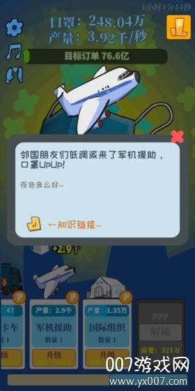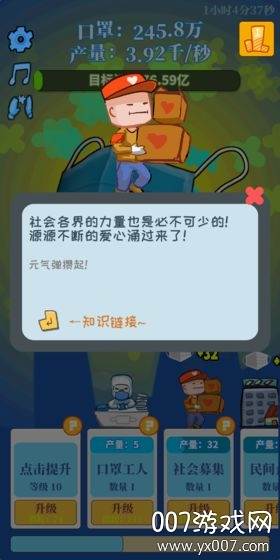 只需轻点屏幕,当您制作的口罩数量超越订单需求,即刻通关!这是一款颇具匠心的放置类口罩制作游戏,旨在生动展现大家在“一罩难求”时期的心声与期盼。
