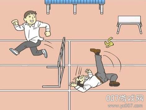 我要翘课 14:获取便当盒和跨栏。用便当换取香蕉皮,将跨栏置于跑道,香蕉皮置于跨栏前。点击小台子,让秃头滑倒。