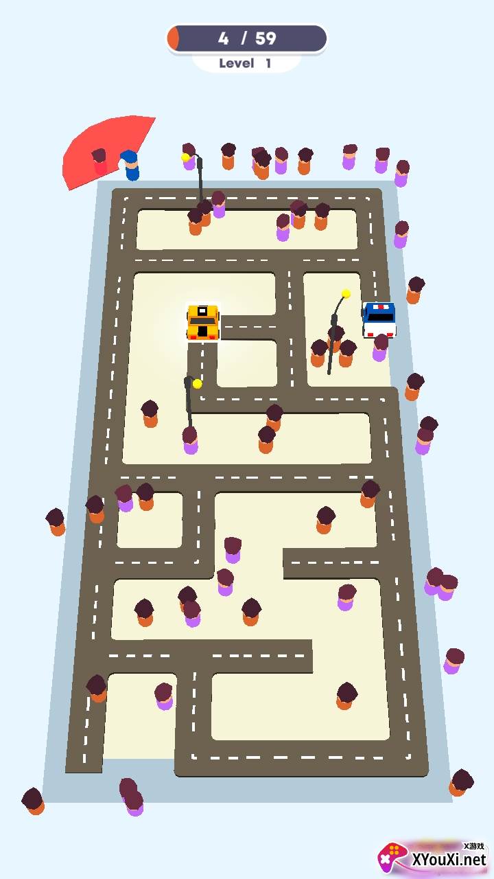 《出租车与警察》是一款考验策略的益智闯关游戏。在游戏中,你需要化身为一名机智的出租车司机,在街道上穿梭,想方设法躲避警车的严密搜寻,以完成各项挑战。每一位警察都有自己独特的巡逻路线,而你必须精准判断,选择一条最安全的路径通过。一旦被警察发现,游戏即告失败,一切努力将付之东流。