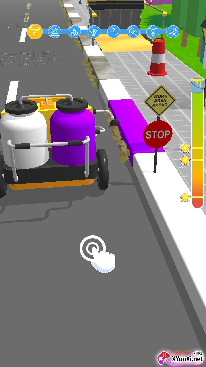 采用卡通简约的画面风格,只需点击屏幕即可完成调色等工作,你可以自由选择心仪的颜料,尽情发挥创意。