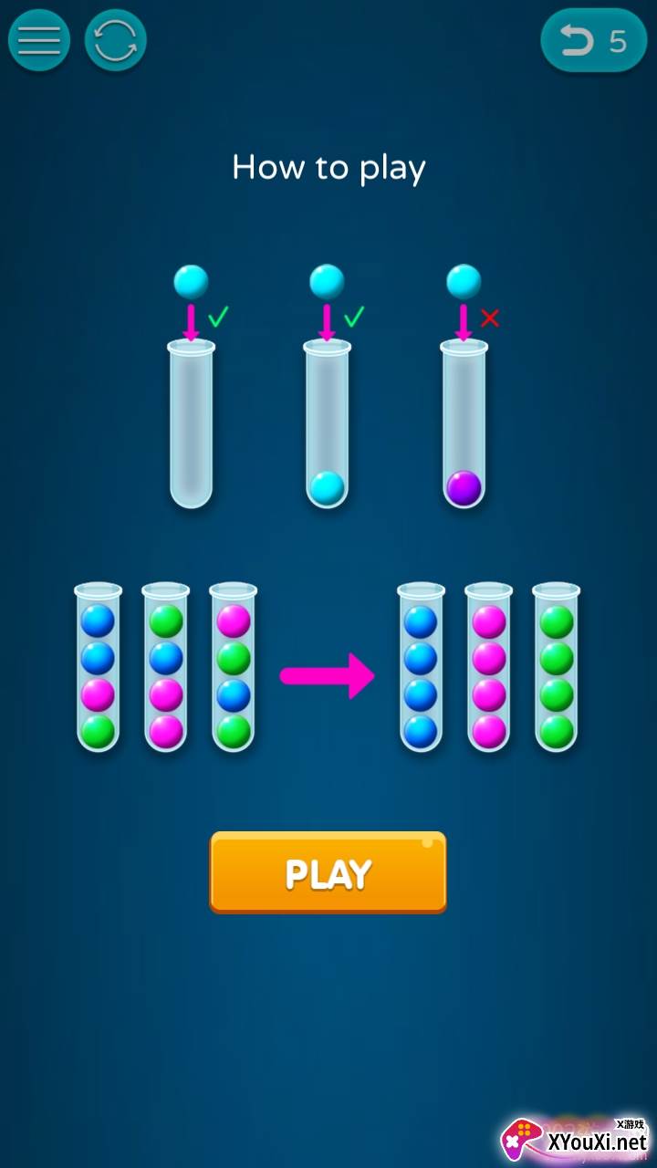 这是一款极具休闲属性的消磨时光佳作。操作简便,乐趣无限。游戏场景中,错落有致地摆放着数个透明的球筒,每个球筒内都盛满了五彩斑斓的小球。玩家只需巧妙地将小球在不同的球筒间转移,最终达成目标——让每一个球筒内的小球颜色都保持一致。这不仅是技术的比拼,更是策略的较量。