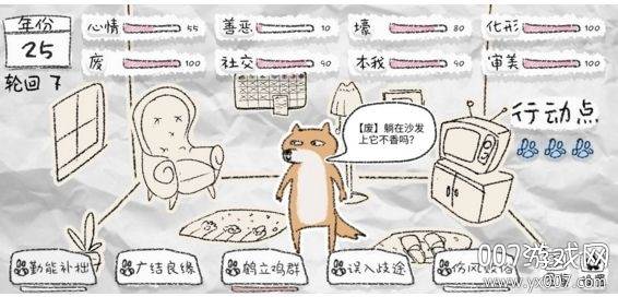 尽管游戏玩法尚显单一,趣味性仍有待提升,但其核心机制——五个大类选项,每个选项下又有四个小分支——为玩家提供了丰富的选择。游戏初期选择有限,但随着玩家的深入,新的选择将逐一解锁。然而,一周目积累的进度似乎难以导向理想结局,这或许与数值平衡的挑战有关。许多选项会同时提升和降低数值,而在我一周目的体验中,几乎只有一种降低的选项,且伴随心情下滑,导致全程心情维持在100%的“高位”。“自我”等其他关键数值则因过于优秀而鲜有增长。此外,特殊事件的触发频率偏低,我玩到最后也仅触发了不到三次,或许是我人品不济吧。
