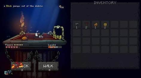 3. 装备驱动,循环升级:游戏的核心循环在于“刷”取并升级装备,你的英雄拥有六格生命值,每一次进入相邻房间都充满未知与随机性。