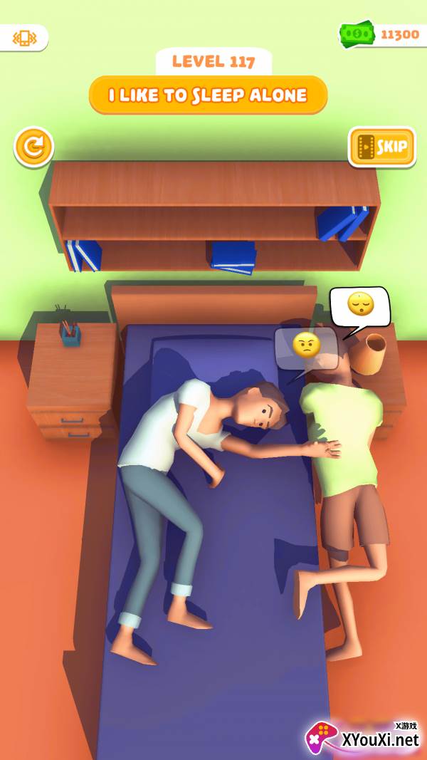 1. 趣味睡眠挑战: 核心玩法围绕“睡姿”展开,考验你的空间想象力与操作技巧。