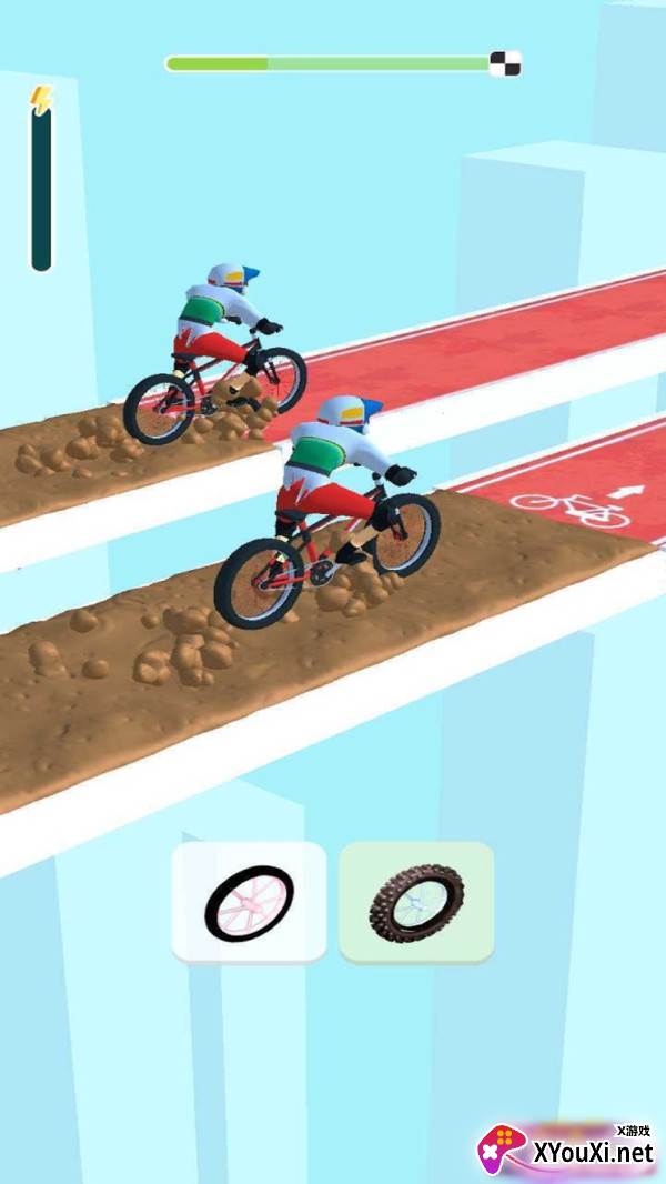 在这场惊心动魄的自行车竞速中,你的技巧将面临极限考验!争分夺秒,精准变向,谁能率先抵达终点?