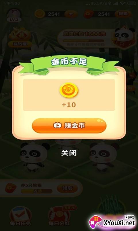 新人玩家首次登录即可获得红包奖励。每次完成游戏内的淘汰或合成操作,都有机会随机获得红包。合成的熊猫越多,获得的奖金自然也越丰厚。