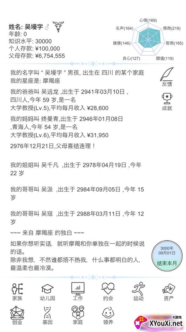 - 成功进入游戏后,你将看到详尽的个人档案,包括你的家庭成员信息。