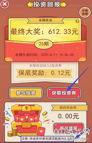 其中,“投资回报”功能尤为吸睛。每日观看视频可获投资券,用于投资赚钱。每张券保底收益0.06元,日均可赚取0.3元以上,且0.3元即可提现。温馨提示:观看视频后,请前往首页右下角的“每日任务”领取投资券。